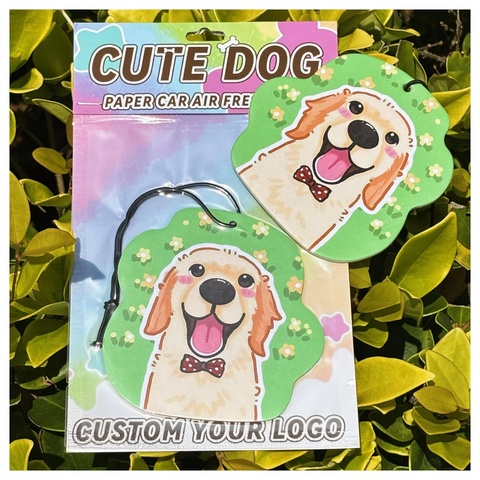 인기있는 골든 리트리버 자동차 공기 청정기 사용자 정의 로고 빈 교수형 공기 청정기 향기 종이 도매 개 자동차 공기 청정기