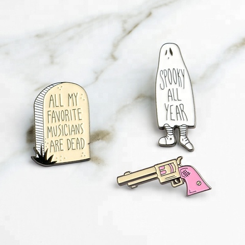 China Fabrikant Goedkope Grappige Pistool Grafsteen Ghost Metalen Reversspeld Groothandel Aangepaste Letter Zacht Email Pin Cartoon Voor Kind